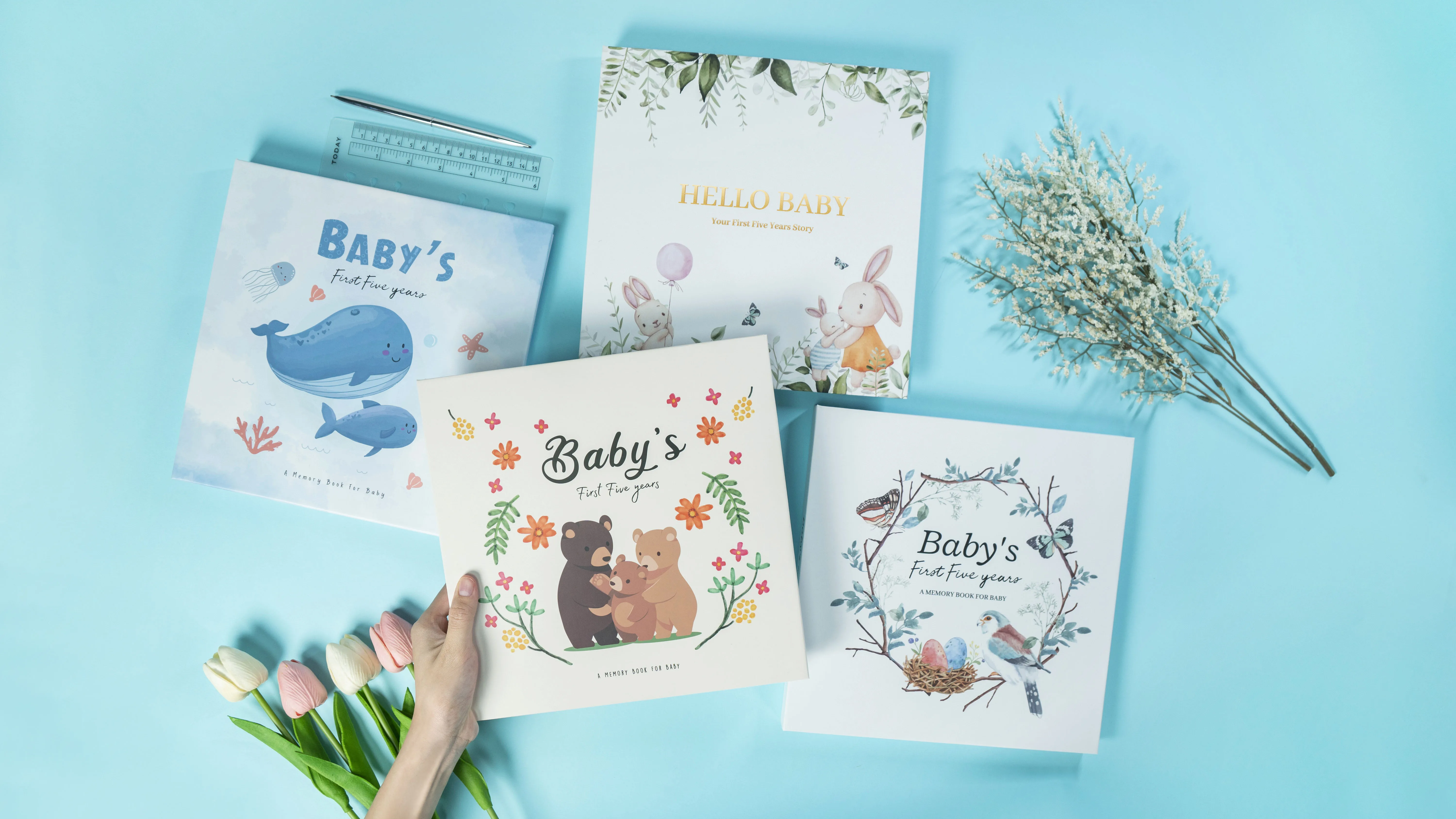 This baby notebook features an A-grade linen cover with intricate hot stamping, ensuring a lifetime of use. It's both durable and luxurious.