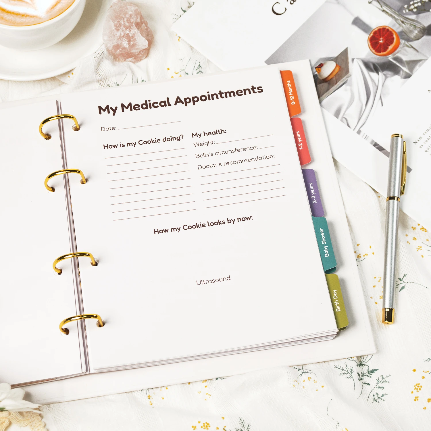 This baby notebook features an A-grade linen cover with intricate hot stamping, ensuring a lifetime of use. It's both durable and luxurious.
